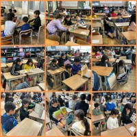 好きな形に破いた画用紙と絵の具を持って、今日は外で図工。