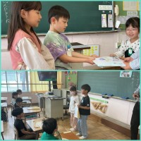 全校学活の前に、社会を明るくする運動作文コンクールで入賞した児童の表彰がありました。
