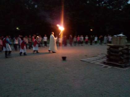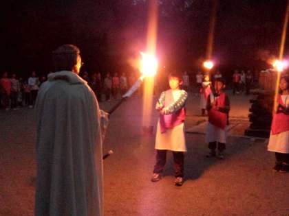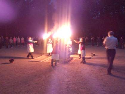 キャンプフアイヤーが始まりました。厳かな雰囲気で火がともされました。