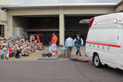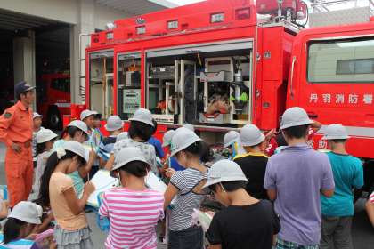 救急出動や火災消火出動の実演をしてくださり、その後、丁寧に施設や消防車両等の説明をしてくださったのでとても学習が深まりました。、炎天下の中、真剣に指導してくださった丹羽消防本部のみなさんに深く感謝をしております。