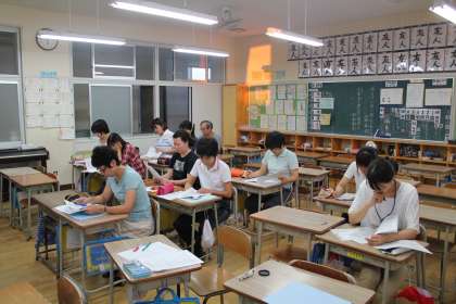 第2回の「かしわ国語塾」は、国語の学習目標と授業の組み立て方についてです。天候が心配されますが、10月1日には筑波大学附属小学校から講師を招いての授業研究を行います。「わかる授業」を目指し、先生たちも、もう一度子どもたちの教科書を読み返していました。