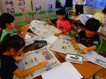 授業の内容は、新聞を読んで見出しを考えたり、興味のある見出しを見つけ切り抜きをしました。普段新聞を読んでいなかった子も、見出しを探しながら楽しそうに取り組みました。