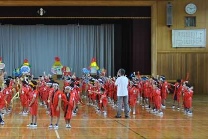 2年生の、生活科発表会に向けての練習は、いよいよラストスパートになりました。呼びかけ、ねりあるき、歌、おどりと発表に向けての準備に力が入ります。今日の練習は、はっぴを着て、気分も本番そのものです。当日は、1年生と保護者の方々をお招きします。楽しい会になることを期待していてください。