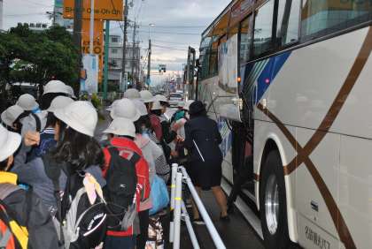 心配された雨も上がり、運動場で出発式を予定通り行いました。京都に向けて、柏っ子たちは元気に出発しました。