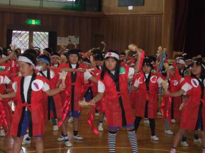〈踊り「よさこいブギウギ」〉鳴子の音も高らかに、みんなでカッコよく踊りました。