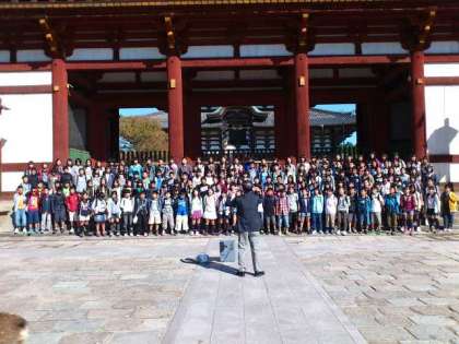 中門での合唱。「ふるさと」「地球星歌」「桜ノ雨」の3曲を歌わせていただきました。