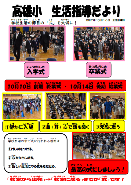 今週の始業式も、高雄っ子みんなでいい雰囲気を作り、後期をいい形でスタートさせましょう!