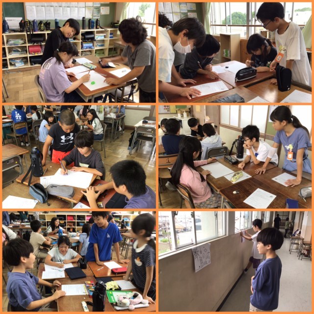 廊下に貼ってある絵を記憶し、教室にいる描き手に言葉で伝えました。描き手が嬉しい情報は何かを考えながら、一生懸命に伝える姿が見られました。