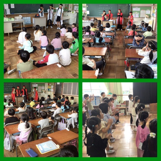 くすのきタイムに5年生と6年生の応援団が、運動会の時の応援の仕方を教えてくれました。