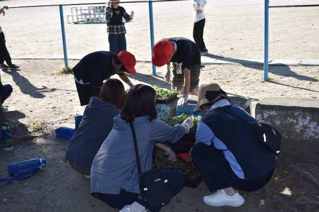 10/23(水)の6時間目に、環境委員会と4年FBC委員会、保護者の方で春苗の苗移植を行いました。多くの保護者の方にご協力いただき、3500程のパンジーとビオラの苗を移植することができました。大切に育てて、素敵な春花壇を作っていきたいと思います。