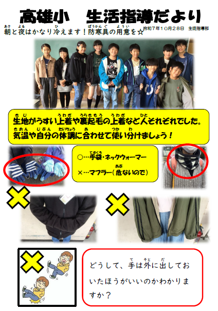 生活指導だより 「防寒具を用意しよう」