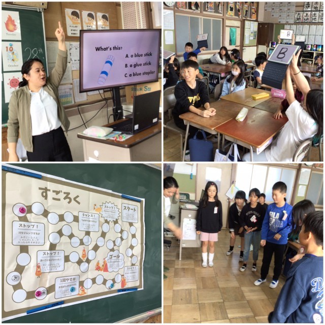 今日の外国語活動では、これまで学んだ英語表現を用いたクイズに答えて、すごろくを進めるゲームを行いました。ゲームを楽しみながら、英語に親しみました。