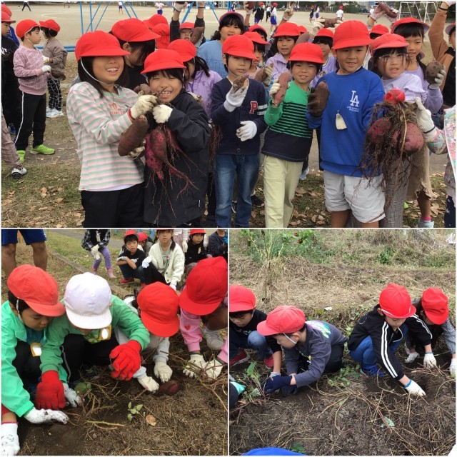大きくなったサツマイモを掘りました!ボランティアの方にも手伝っていただき、みんなお持ち帰りできました。