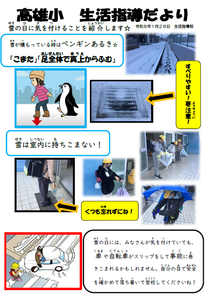 生活指導だより「雪の日に気をつけること」