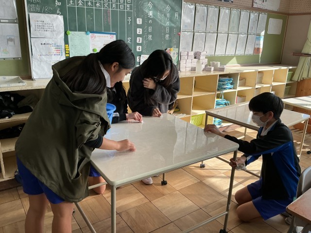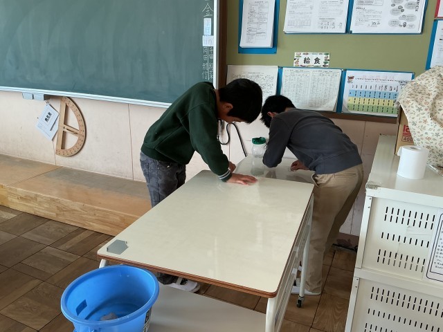 給食委員会の活動 公開日 2026/02/19 更新日 2026/02/19 今日の高雄小 今年度最後の給食委員会では、1年生から4年生の各クラスの配膳台を綺麗にしました。5・6年生の力で配膳台もピカピカになりました。 +3 いいね(0)