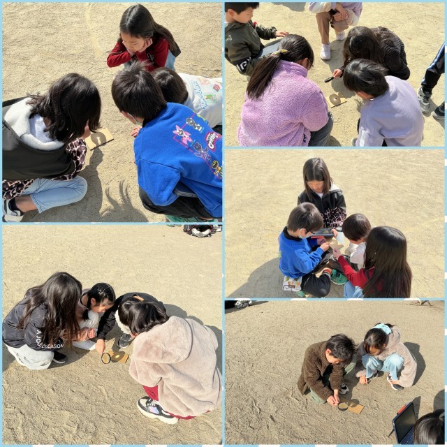 虫眼鏡を使って、日光を集めるとどうなるか?の実験を行いました。日光を一部分に集めることに苦戦している班もありましたが、集めたところから煙が出ることを発見した子たちは、びっくりしていました。焼き芋の匂いだ〜とはしゃぐ子もいました。