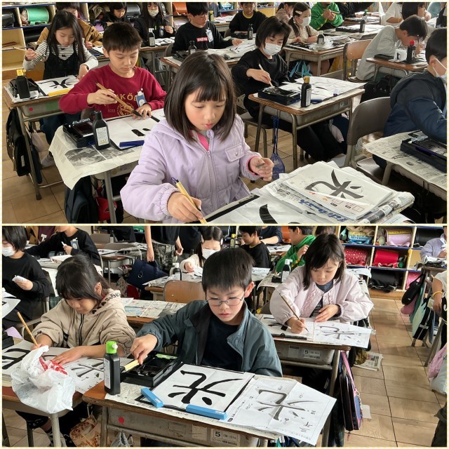 今日は最後の毛筆の授業でした。文字のバランスや止め、はね、はらい、曲がりなどのポイントを意識して書けるようになってきました。準備や片付けも素早くできる子が増えてきました。