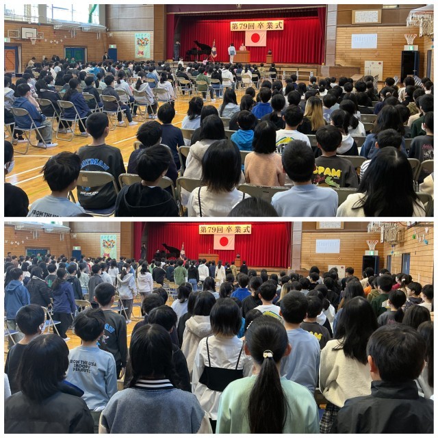 高雄小学校の卒業式は、5年生が在校生を代表して参加します。今日の卒業式の予行では、4年生が次年度に向けて参加しました。