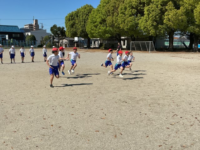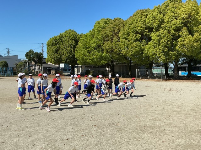 1組は今日が今年度初の外体育でした。青空のもと、気持ちよく走りました。