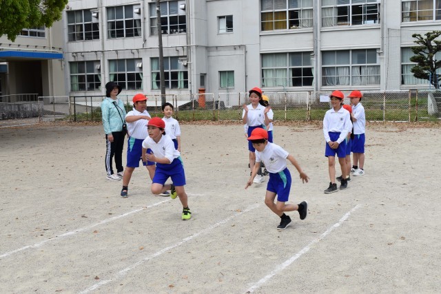 4の2は、50m走の練習をしました。