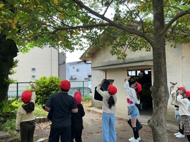 理科の時間に、春の植物の観察を行いました。かろうじて咲いていた桜の花をみつけ、まだ桜の花が残っていることにみんな驚いていました。学習端末を使って、しっかり記録することができるできました。