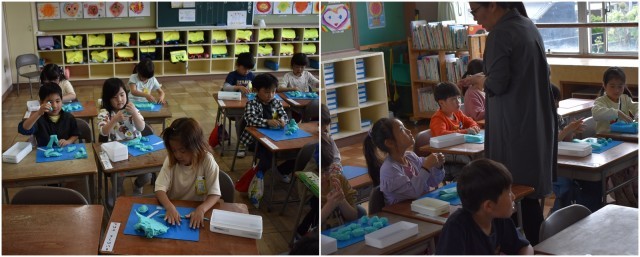 1の1、1の3は図工で粘土を使って作品を作りました。