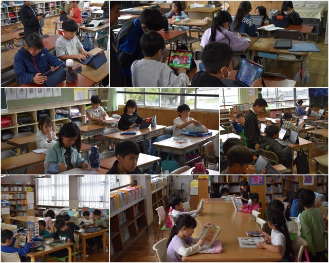 教室や図書室で読書をしたり、iPadを使ったりする児童が多かったです。