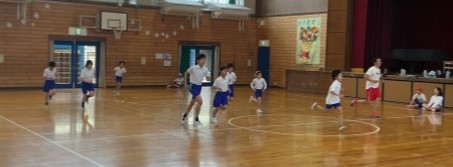 体育の時間で、体力テストの練習に取り組んでいます。今日の種目はシャトルランです。一定時間内に決められた距離を走り続ける種目で、持久力が必要です。良い記録を出すために、一生懸命がんばりました。本番の時はさらに記録が伸びるといいですね。