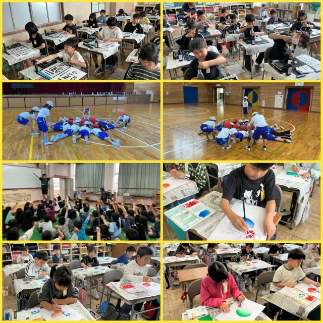 授業では習字をしたり、体育でたくさん体を動かしたり、図工で色塗りをしたりしました。みんなの頑張る姿が「うれしい」です。