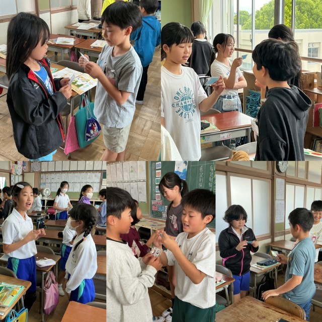 「How do you spell your name?」と相手に尋ね、カードに書かれている名前を言う練習を行いました。