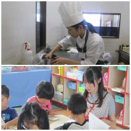 岩井先生は、扶桑町教員社会体験研修に参加して、町内の洋菓子店で洋菓子作りのお手伝いや販売の仕事をさせていただいています。心を込めてのお菓子づくりや笑顔での接客の大切さを学んでいます。