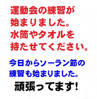 運動会練習が毎日、行われています。多くの汗をかくので、ご協力をお願いします。