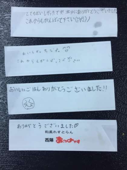箸袋に「おいしかった!」とのメッセージを書いている子がたくさんいました。
