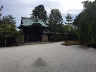 とても広い庭で、砂の模様や緑の紅葉に感動していました。