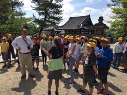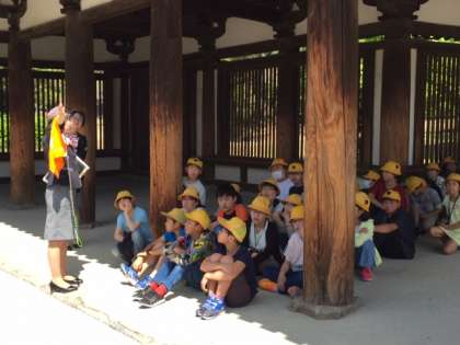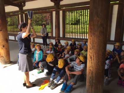 法隆寺を学習中です。一生懸命ガイドさんの解説を聞いてみます。