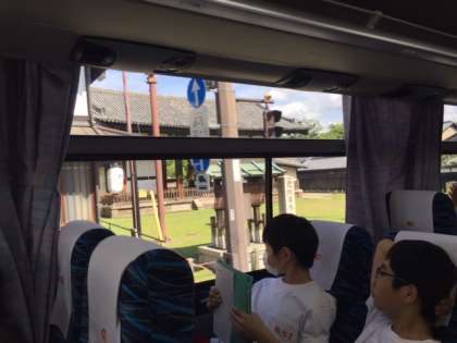 今から帰路につきますが、バスに乗りながらもガイドさんの説明のもと、車窓学習をしています。