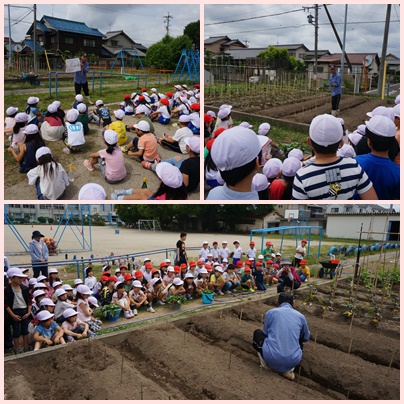 畑の先生をお招きし,サツマイモの苗植えを行いました。