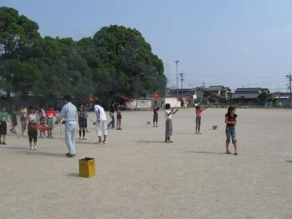 野外学習のキャンプファイヤーで行う、ファイヤーダンスのリハーサルを行いました。児童18名は、初めてつける炎に驚きながらも、放課を惜しまず練習した成果を存分に発揮することができました。お忙しい中、見に来てくださった保護者の方々、ありがとうございました。野外学習も大成功することを願っています。