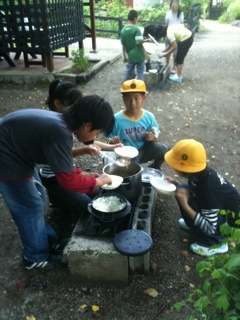 男女が協力してカレーづくりです。