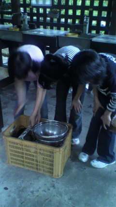 野外学習夕食の片付け