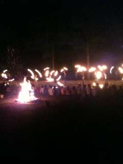有志によるトーチトワリングが行われ、キャンプファイヤーもクライマックスを迎えました。星がきれいです。