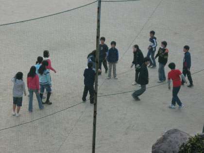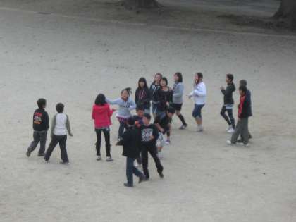 来年2月3日(木)に大縄跳び大会があります。運動場では、クラスで練習している姿が見られました。大会では、クラスで2チームに分かれて合計数を足します。