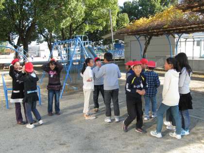 文部科学省実施のスクールミーティングでも子供が外で遊ばなくなり発達に応じた遊びや体験が少ない,コミュニケーションがとれなくなったといった子供の変化を指摘する声も多く,子供同士の「群れ遊び」などの交流が有効との意見がありました。この遊びは,相手の動きに応じた創造的な行動が見られ,仲間と連携し,助けたり助けられたりを自然に体験します。全ての子どもが必要とされ大事にされるので、一体感の中で勝ち負けが決まります。体力の向上だけでなく,教室ではなかなか見られない一人一人の持ち味が出て,仲間との連携を大切にしながら仲間のよいところを実感することができます。このような体験を全ての子どもに味わわせたいものです。