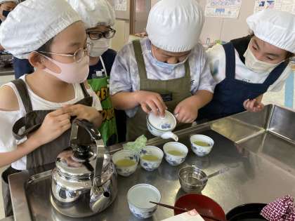 おいしいお茶のいれ方を家庭科で学習して、実習を行いました。おいしくいただきました。