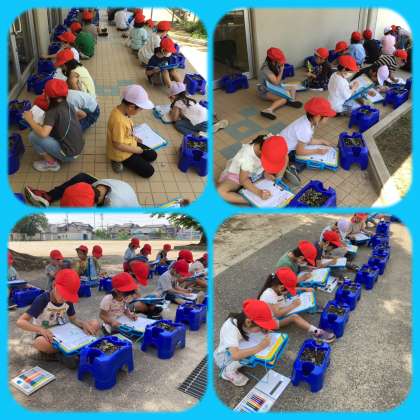 あさがおの芽が出ました。 今日は、みんなで観察をしました。