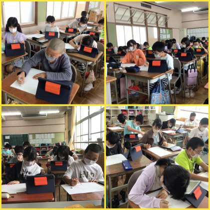 修学旅行の思い出を版画にします。今日はその下絵をかいています。