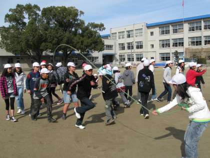 明日の大なわ大会に向けて、今日も特訓するクラスが多いです。6の3もペースが上がってきました。どうしたらうまくできるかを練習後に丸くなって話し合っていました。このような行動が上手になったり、クラスのまとまりを高めたりするのでしょう。