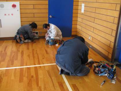 体育館の電気設備のコネクターが故障していたので、破損箇所とその座台も替えていただきました。