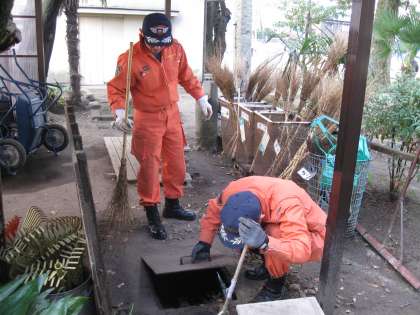 外庭の隅にある消防設備としての防火水槽の水量や安全性を確かめるために丹羽消防署の方々が来てくださいました。学校の安全は、色々な人たちに守られていることを今日も実感することができました。