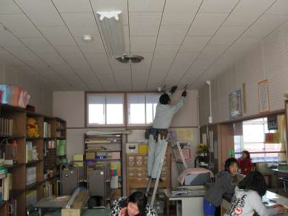 2月9日 あすなろタイムの図書館 司書室に新しい電灯が‥